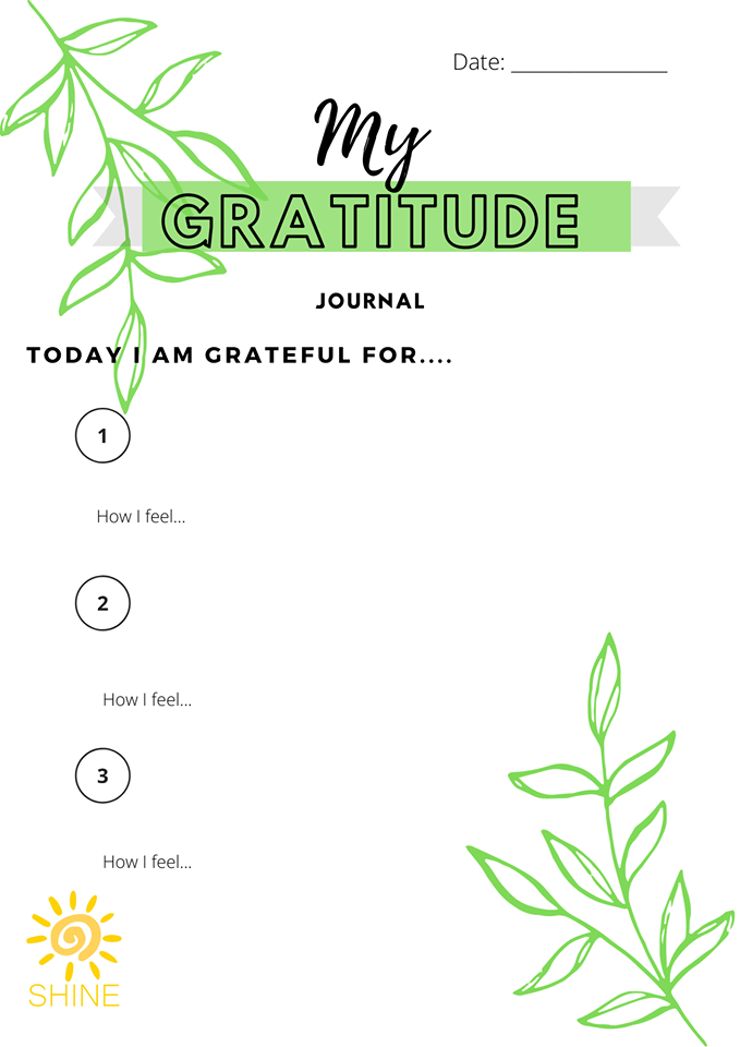 An example to try could be a gratitude journal. To keep a gratitude journal you can write 3️⃣ good things that happened in your day or 3️⃣ things that you are grateful for and then beside them jot down how those things make you feel! You can try using our template that is attached in the pictures!