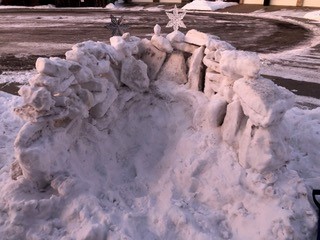 - Make a fort or art pieces from ice and snow: We have an abundance of snow outside!