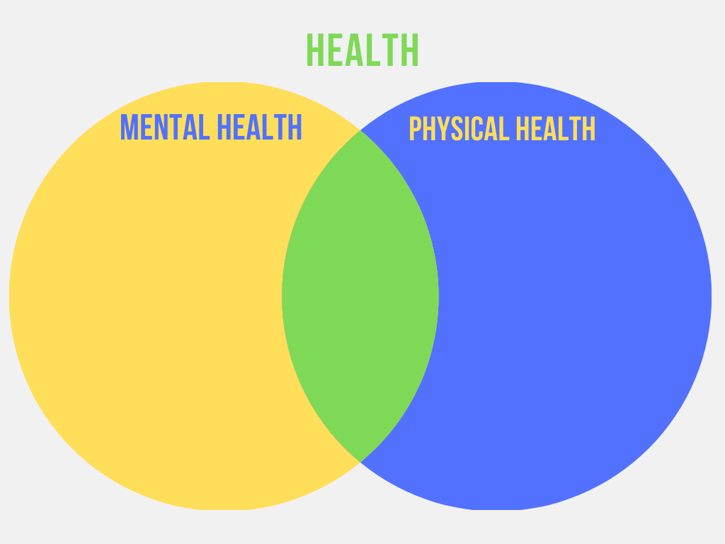 In some of our SHINE programs, we talk to students about the importance of physical health and mental health and the interconnection between the two. Often, to illustrate this, we draw a Venn-diagram similar to the one below: